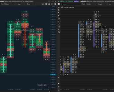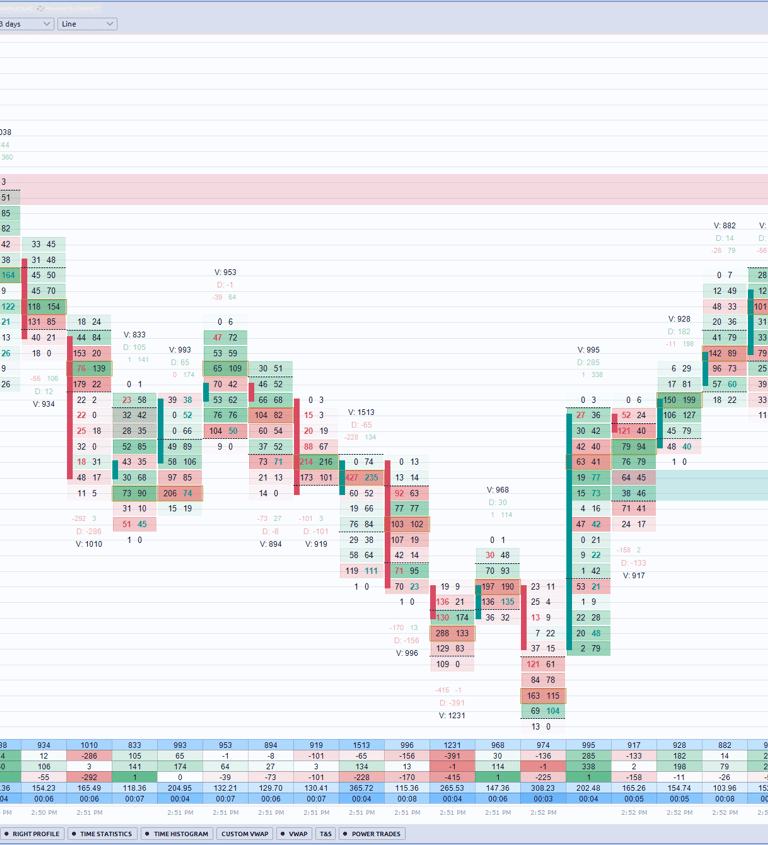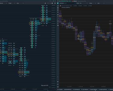 The ZOF indicator provides access to two columns: Bid/Ask on the left, and your choice of Volume or Delta profiles on the right. This gives you real-time, tick-by-tick information for making better trading decisions.