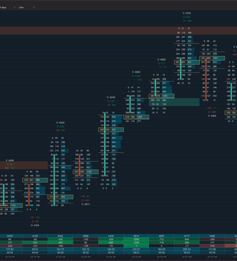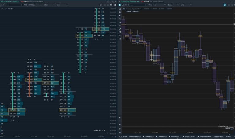 Identify absorption or rejection zones on your footprint or candlestick charts. Monitor in real time where the highest volume is being traded and detect potential trend changes or continuations instantly.